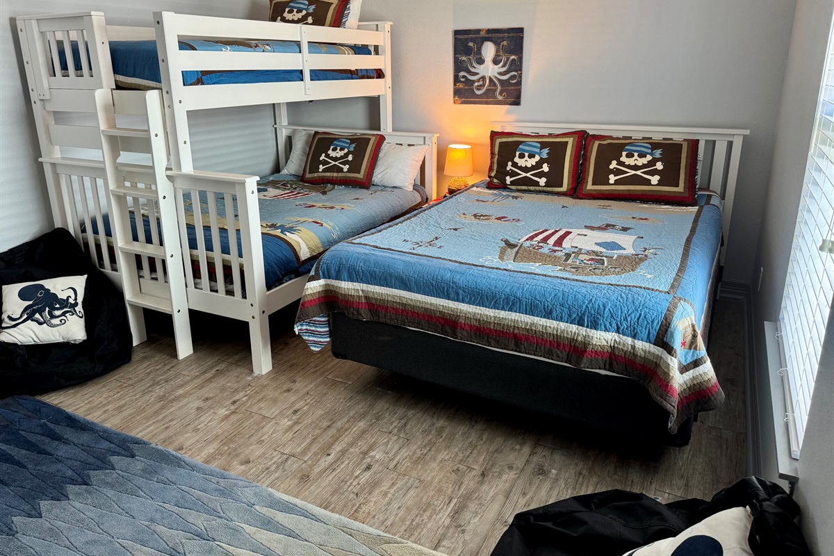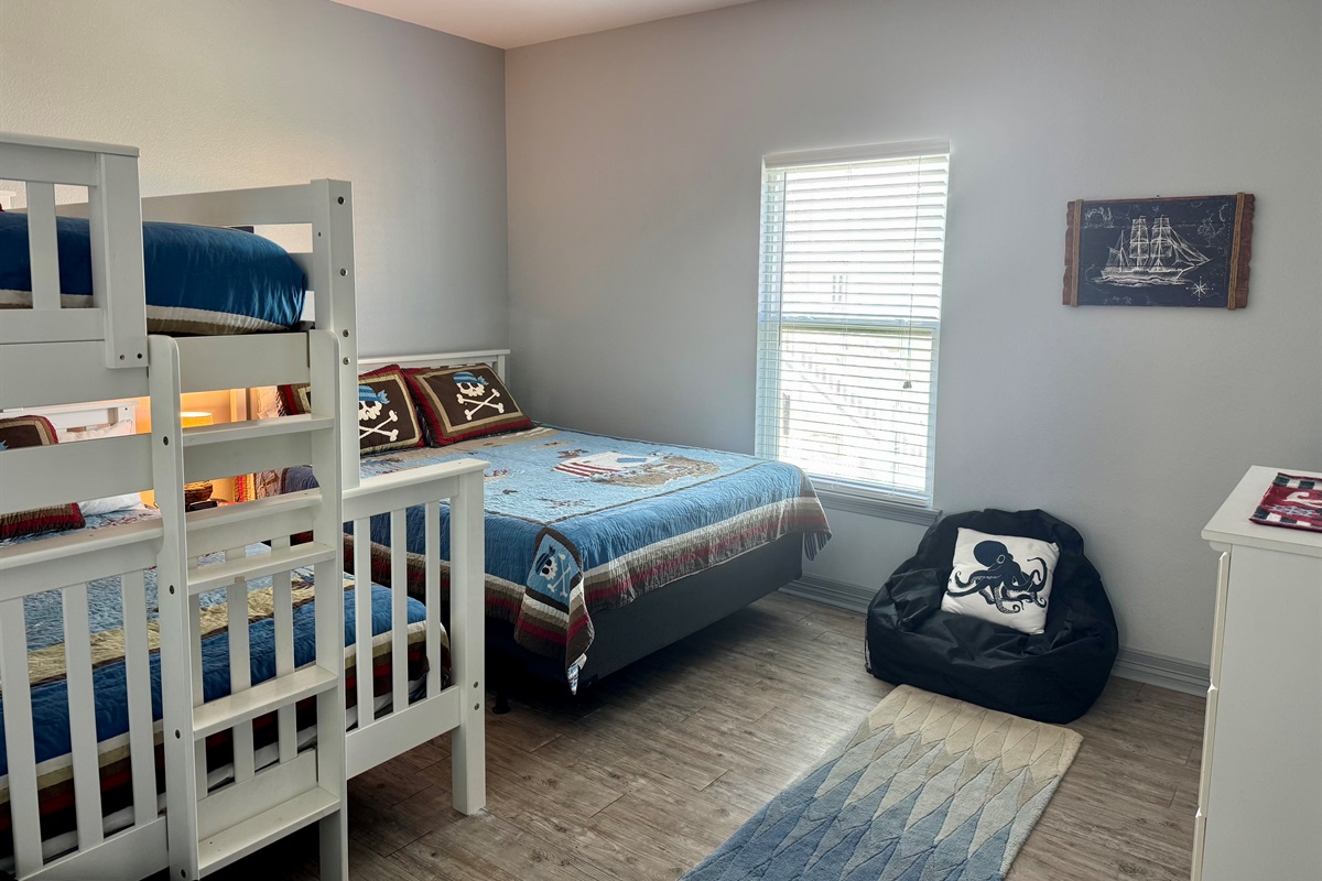 3 Bedrooms • 2 Bathrooms 2 Baths • Sleeps 2-12Grey Goose is a gorgeous home located only steps away from the Middle Beach in the quiet village of Surfside Beach, Texas. Driving up to the house you will immediately notice the expansive wrap around deck with plenty of shade, the two picnic tables, and the great water views. Another fun feature is the water hose located at the top of the stairs; this is ideal for hosing off sandy feet, kids and beach toys! This deck was designed to be enjoyed all day, all night, rain or shine.