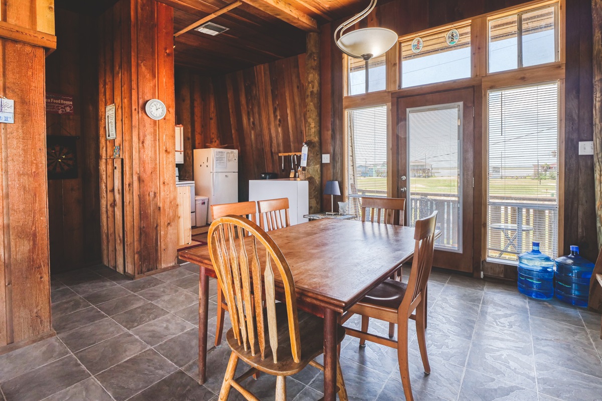 2 Bedrooms • 1 Bathroom 1 Bath • Sleeps 1-8Welcome to Pete's Retreat! A rustic cabin (made of cedar), with a touch of a mid-century modern vibe, that sits among the dunes and offers the best views in Surfside Beach. Inside the house, it feels like you are in a treehouse with the wall of windows that overlooks the dunes and beach. It is truly breathtaking to watch the sunrise over the water in the morning.